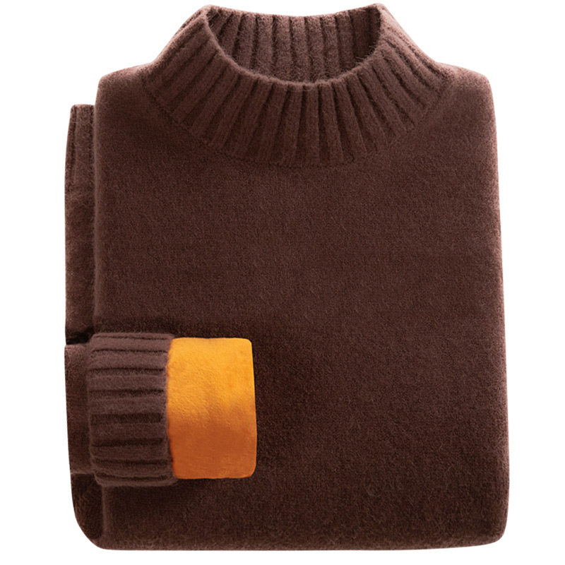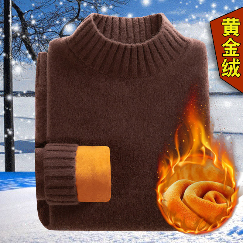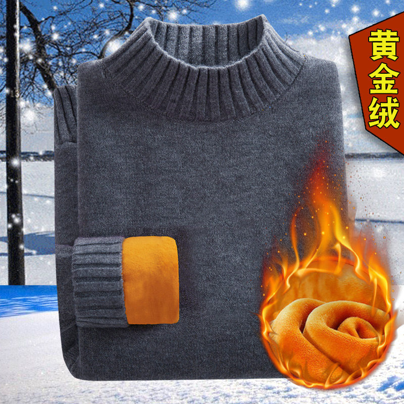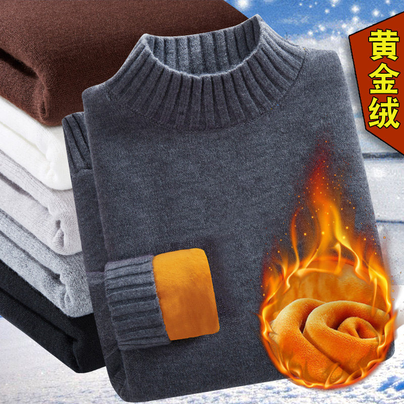 Semi-high collar knitted sweater for men's autumn and winter plus suede thickened Korean version in pure color collar warm and undershirt