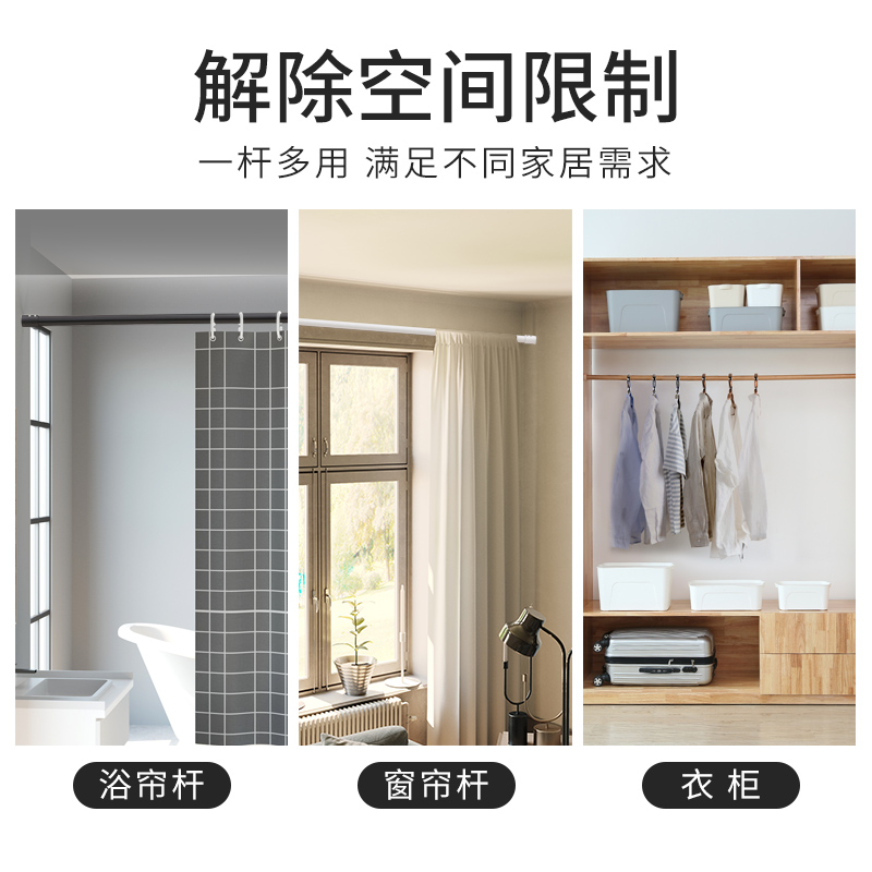 Integral punching straight lever Type 304 stainless steel unretractable hanging clothes-lever bath curtain rod Wardrobe Stem Window Curtain Rod