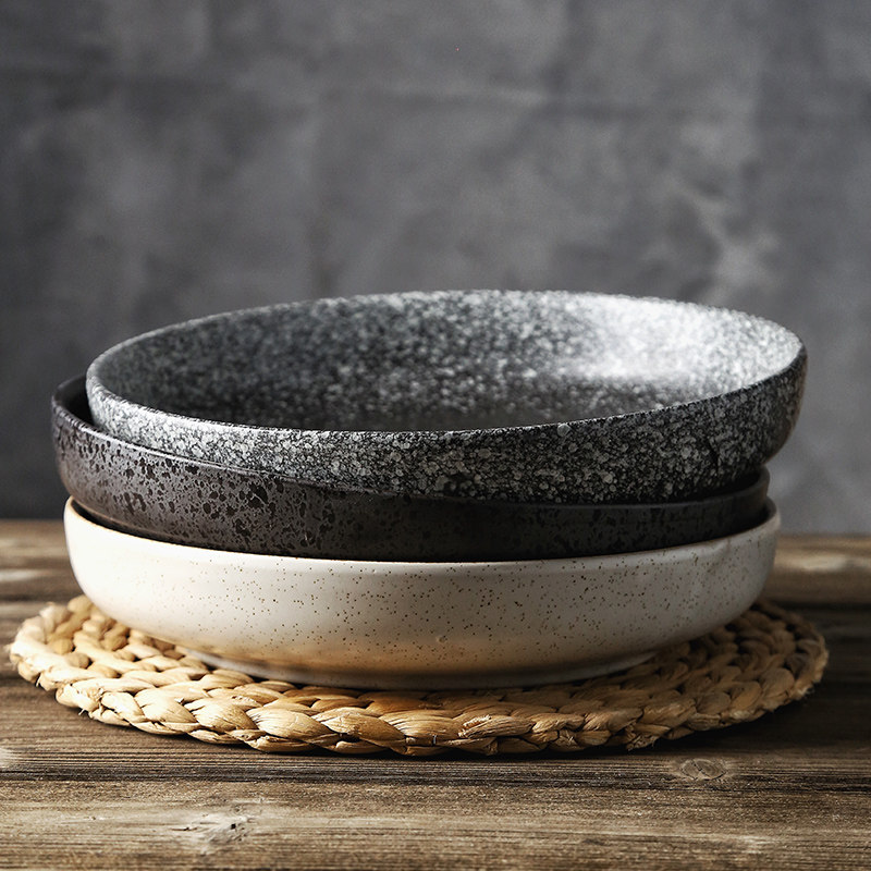 Japanese tableware thickened deep disc ceramic plate creative breakfast plate saucer and wind household dish set