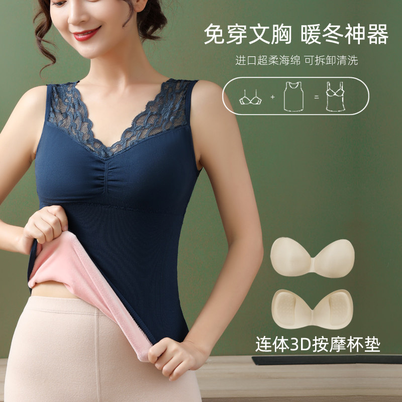 Women's hot clothes thickened plus-velvet cotton vest autumn and winter bottom body tight cold-proof wear with chest cushions