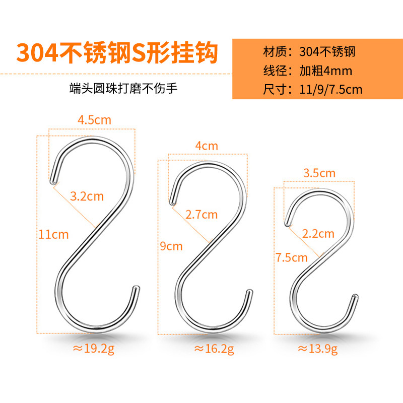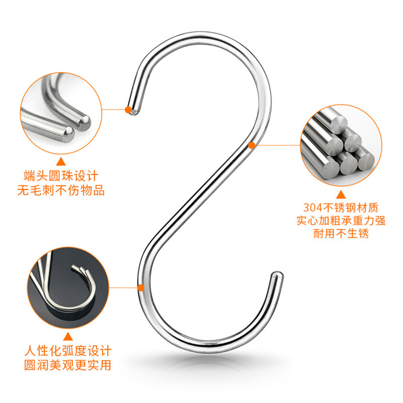 ()304 stainless steel S hook multi-functional size S-shaped hook sausage bacon hook kitchen s-shaped hook