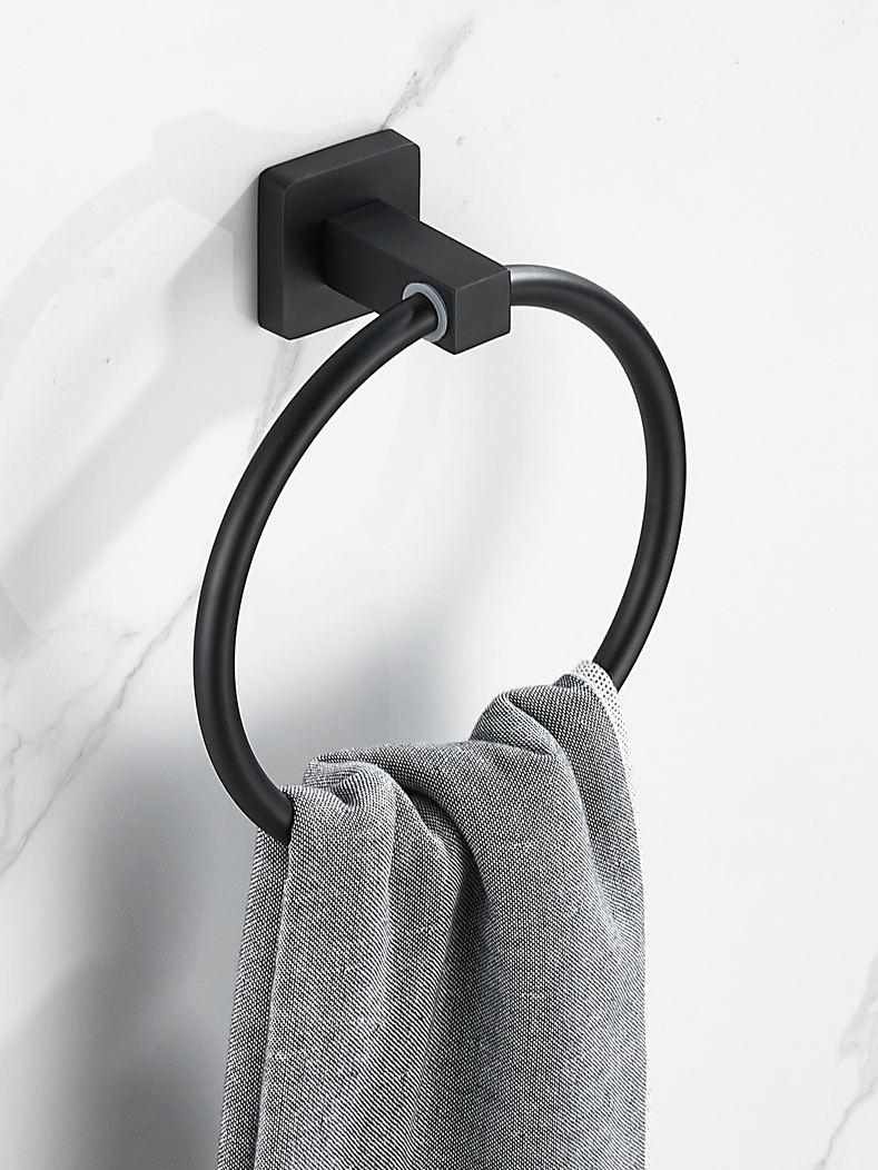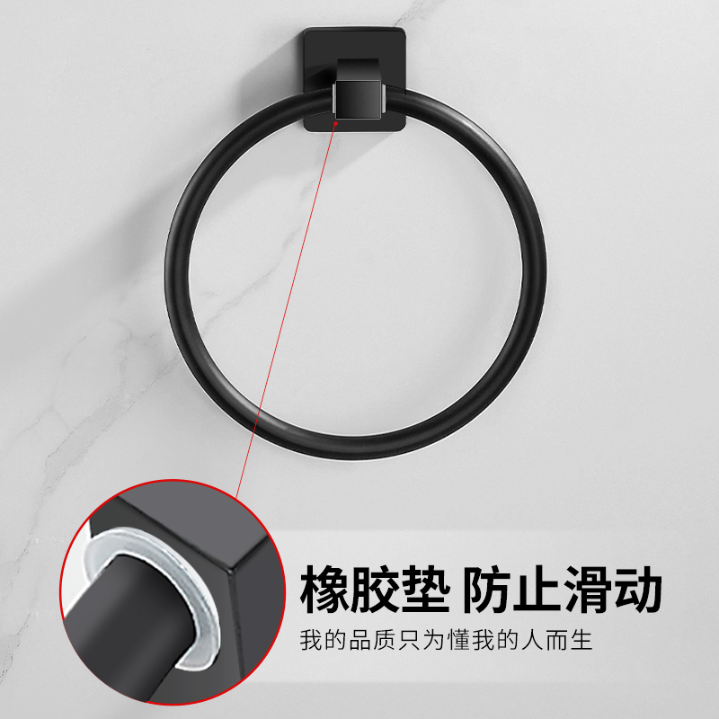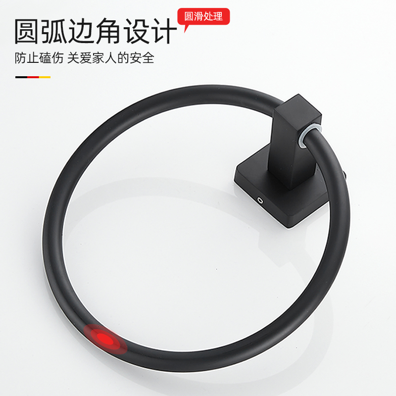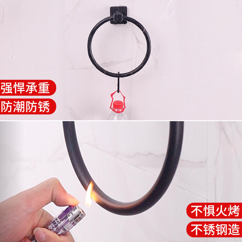 Free punch towel ring bathroom towel rack towel rack towel rail black round stainless steel towel ring toilet