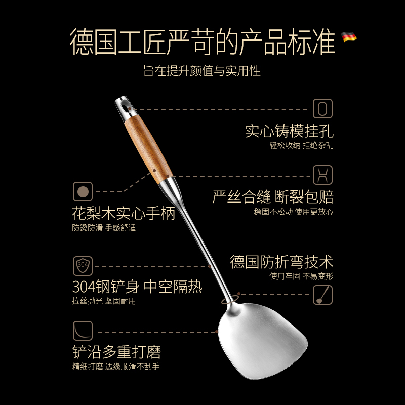 German kitchenware set 304 stainless steel kitchen kitchen household cooker spatula spoon full set seven piece set pot spatula stir-fry spatula