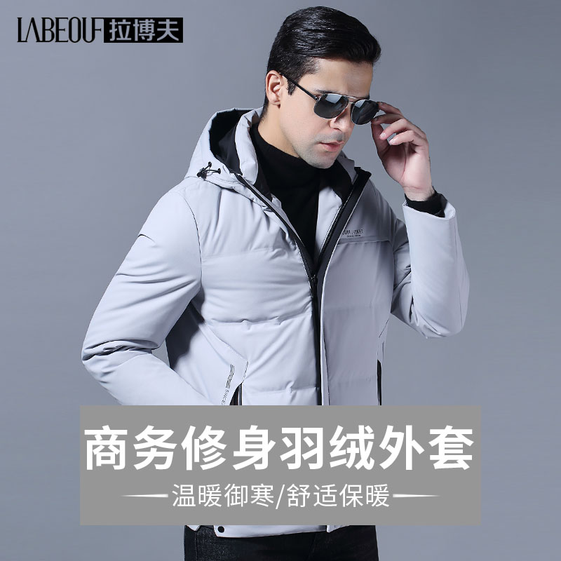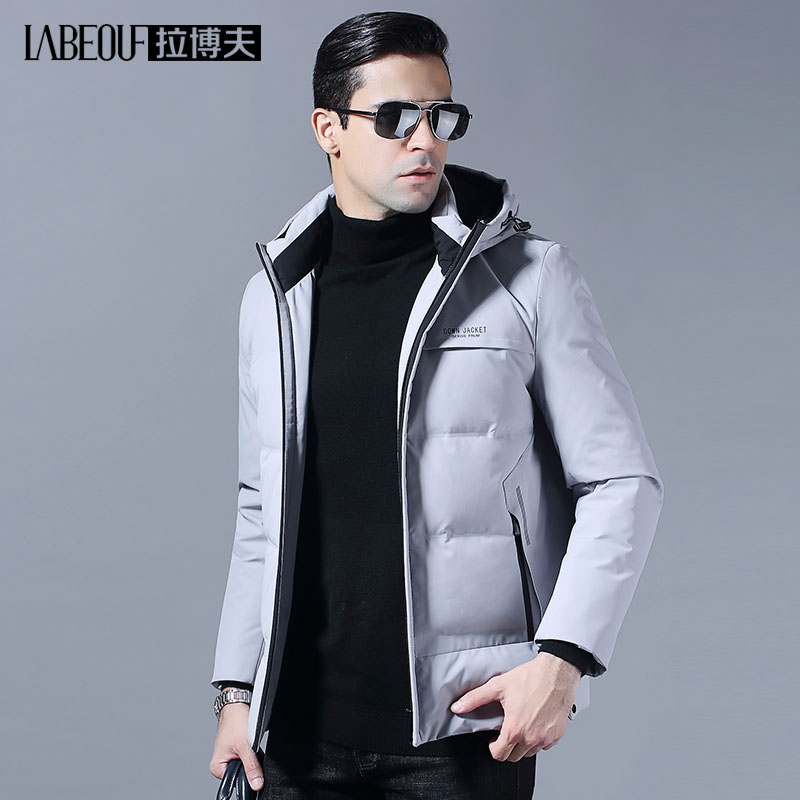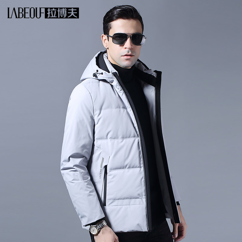 LaBeouf down jacket men's white duck down hooded men's jacket middle-aged business casual autumn and winter light gray top