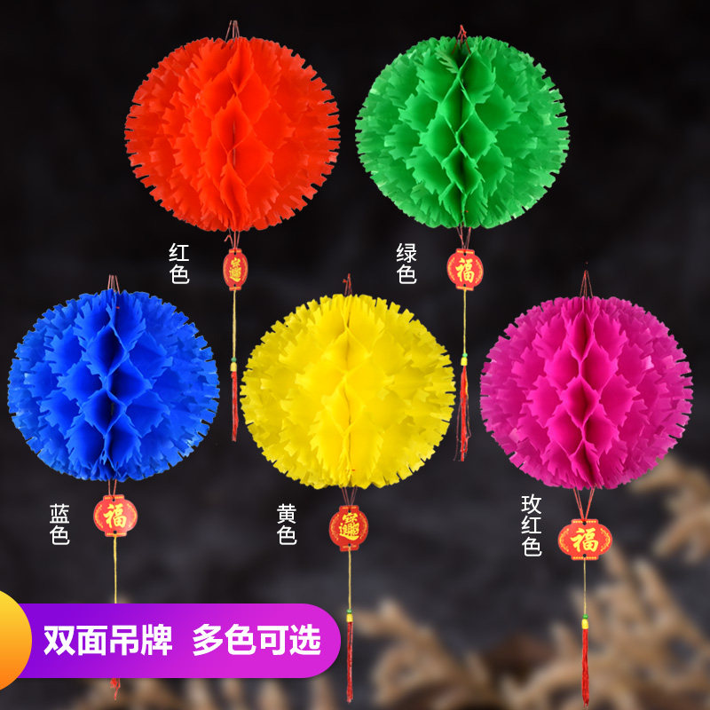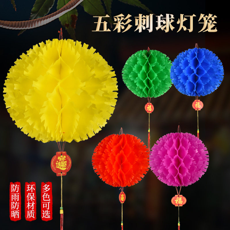 Plastic small red paper lanterns wedding festival decoration Spring Festival New Year's Day five-color thorn ball pineapple lantern festive supplies