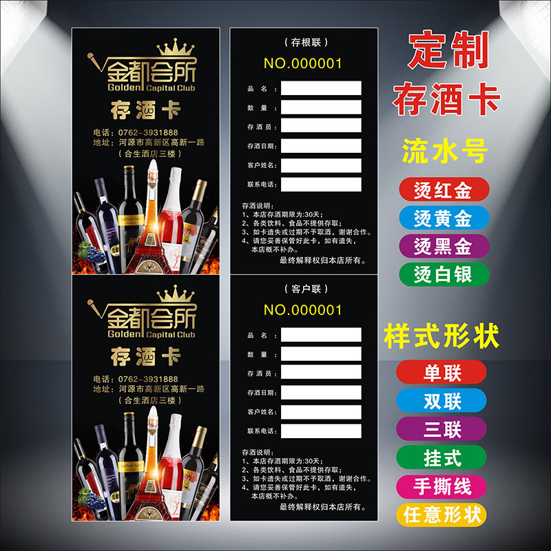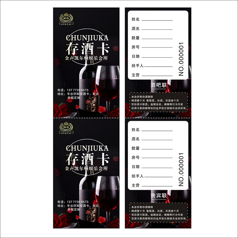 Wine card storage card custom printing bar KTV wine card to take wine card opening card to code wine card coupon
