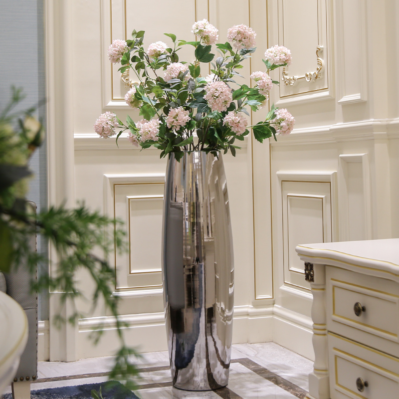Silver plated floor-to-ceiling vase - 60 tall + large branch hydrangea set