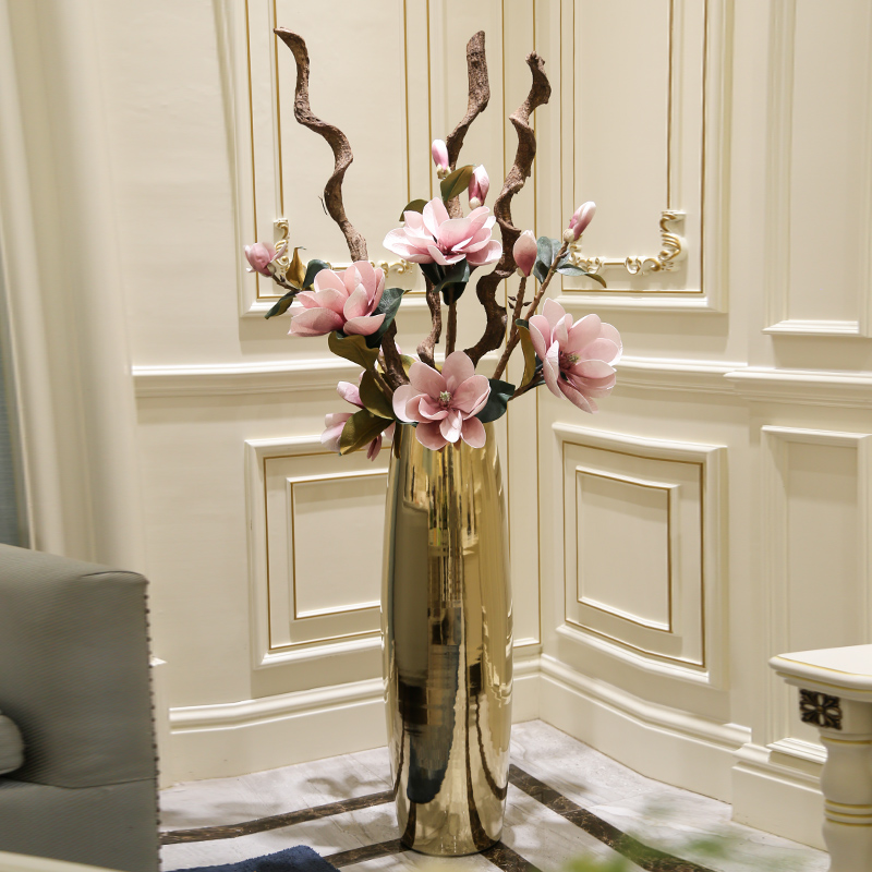 Gold plated floor-to-ceiling vase - 60 tall + dragon vine magnolia set