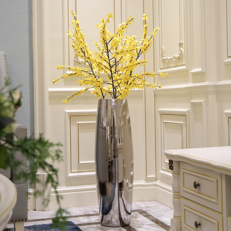 Silver plated floor-to-ceiling vase - 80 high + vertical spring flowers