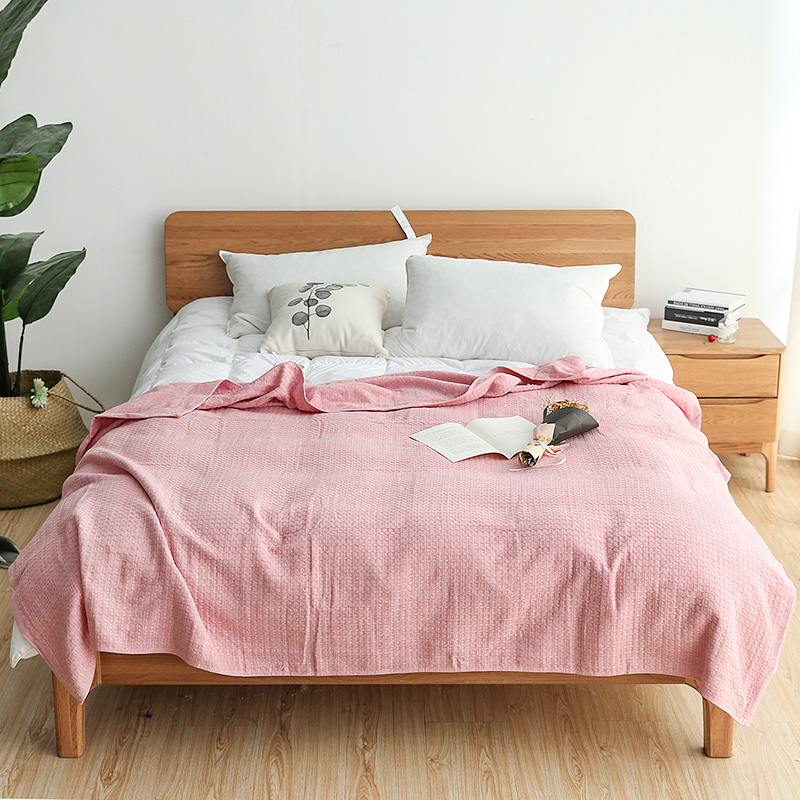 Pure cotton waffle single quilt blanket Summer cool quilt nap blanket colored spinning honeycomb towel quilt for students