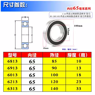 Deep groove ball motor bearings 6813 6913 6013 6213 6313RS ZZ RZ Inner diameter 65 mm Series