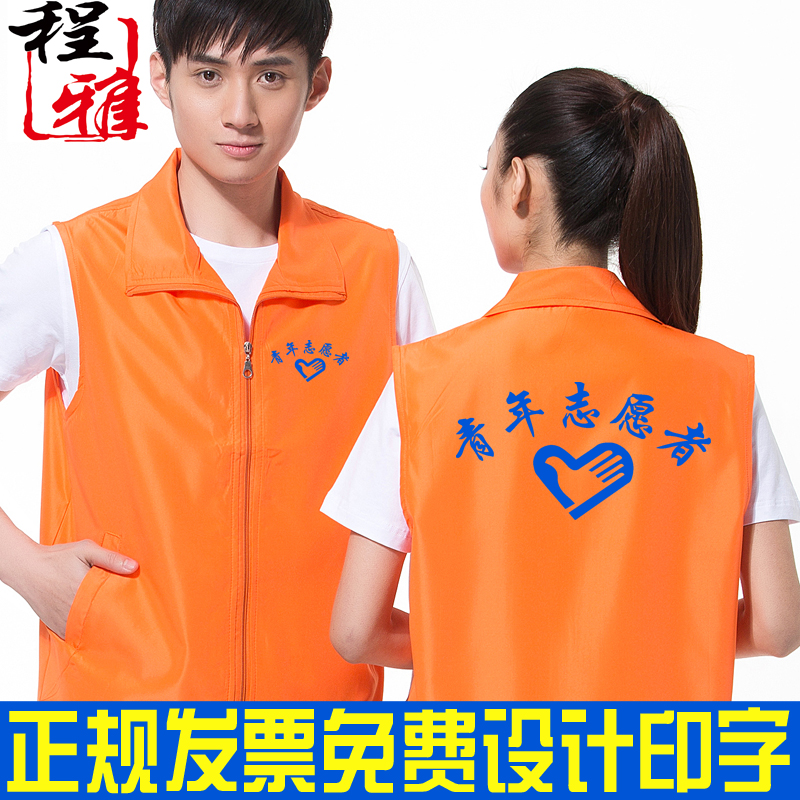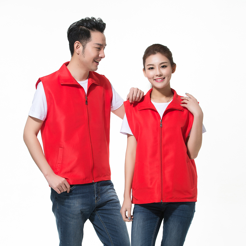 Volunteer Supermarket Waistcoat Custom Red Party Volunteer Work Clothes Print Character Logo Advertising Campaign Vest Set