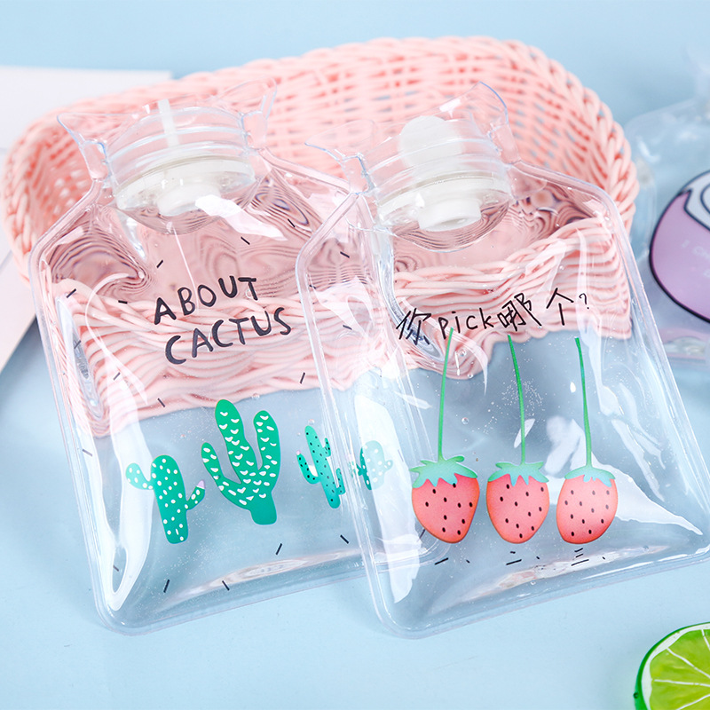 Cartoon PVC Mini Hot Water Bag Water Filled Water Warm Water Bag Explosion Proof Portable Transparent Trumpet Warm Hand Treasure