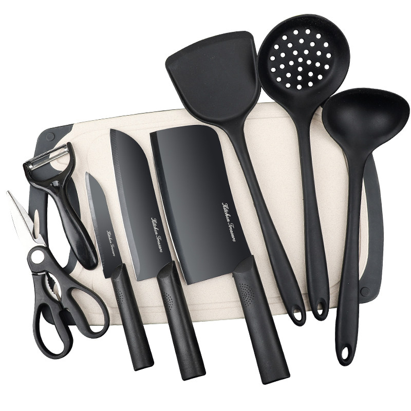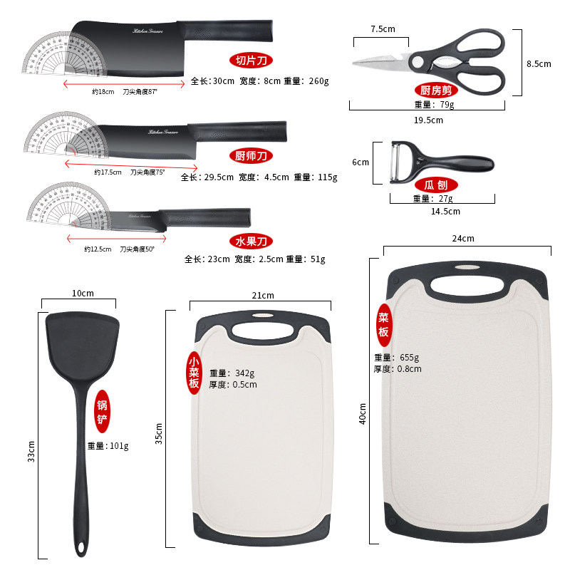 Kitchen knife scissors melon planing small cutting board (collection plus purchase and delivery knife cover) kitchen knife boiler shovel melon planing small cutting board (collection plus purchase and delivery knife cover) kitchen knife pan shovel water fruit knife small cutting board (four pieces