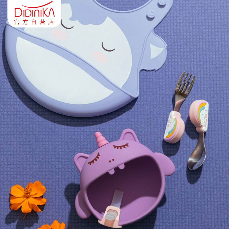 didinika vice food bowl baby silicone gel suction cup Fork Spoon Children Cutlery Sets Digistable Eating Tools