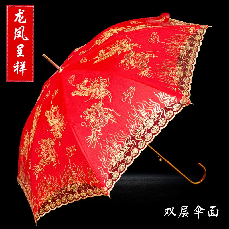 Dragon and Phoenix Chengxiang Noble Double Embroidery Double Happiness Dragon and Phoenix Noble Double Embroidery Peacock Open Screen-Gold Handle Grey Light Blue Dark Blue Knotted Marriage Traditional Classic Dragon and Phoenix