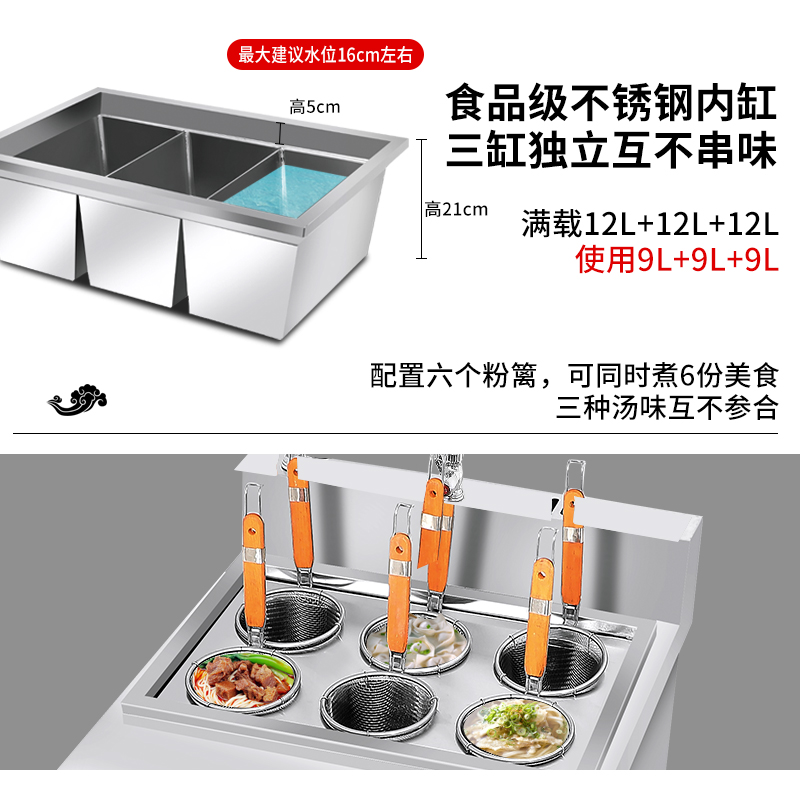 6-hole three-cylinder-vertical electric noodle cooking stove Type electric noodle cooker 4 holes double