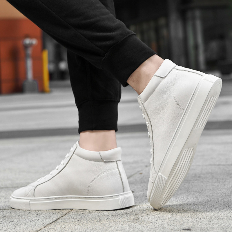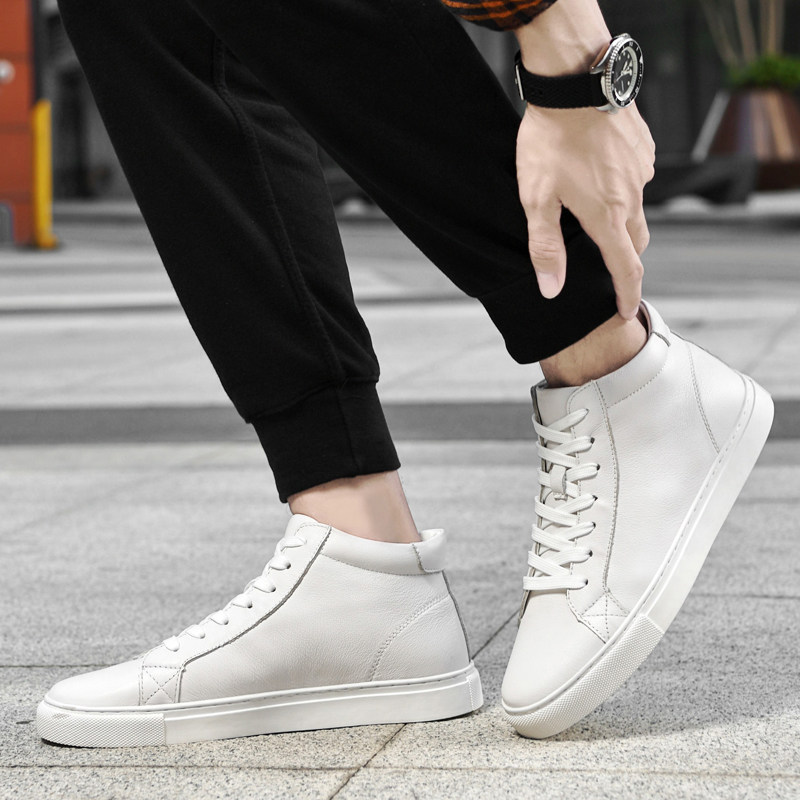 Tide brand white shoes men's leather high tube all-match four seasons large size 49 small size 36 Korean version of the trend in the tube casual shoes
