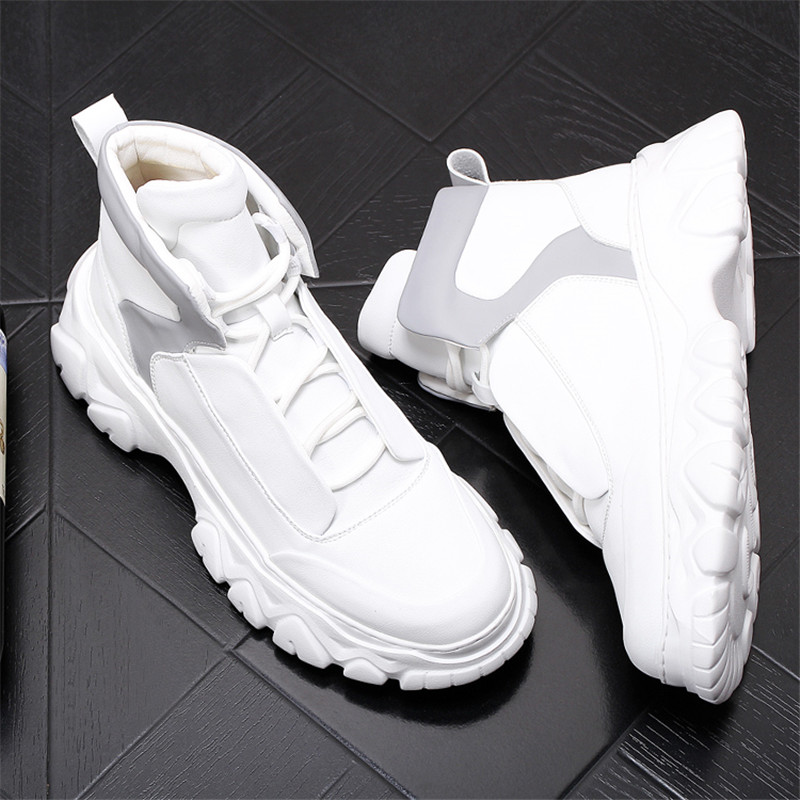 Europe station men's shoes white Martin boots 100 hitchhiking version tooling shoes thick bottom inner heightening high helps winter gush short boots