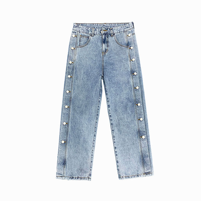 Plus Mast Size Jeans Women Design Feel Row Buttons Straight Barrel Loose 100 hitch, fat mm wide leg pendant feeling old daddy pants
