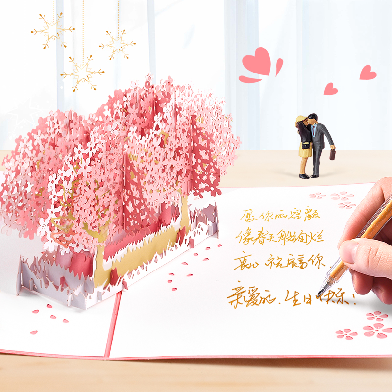 2021 New Greeting Cards Birthday 3D Stereoscopic Greeting Cards Ghostwriting High-end Couples Creative Small Cards Ins Wind Wedding Blessing Thank-You Letter Exquisite Handmade Diy Blank Mid-Autumn Festival Gift Postcard