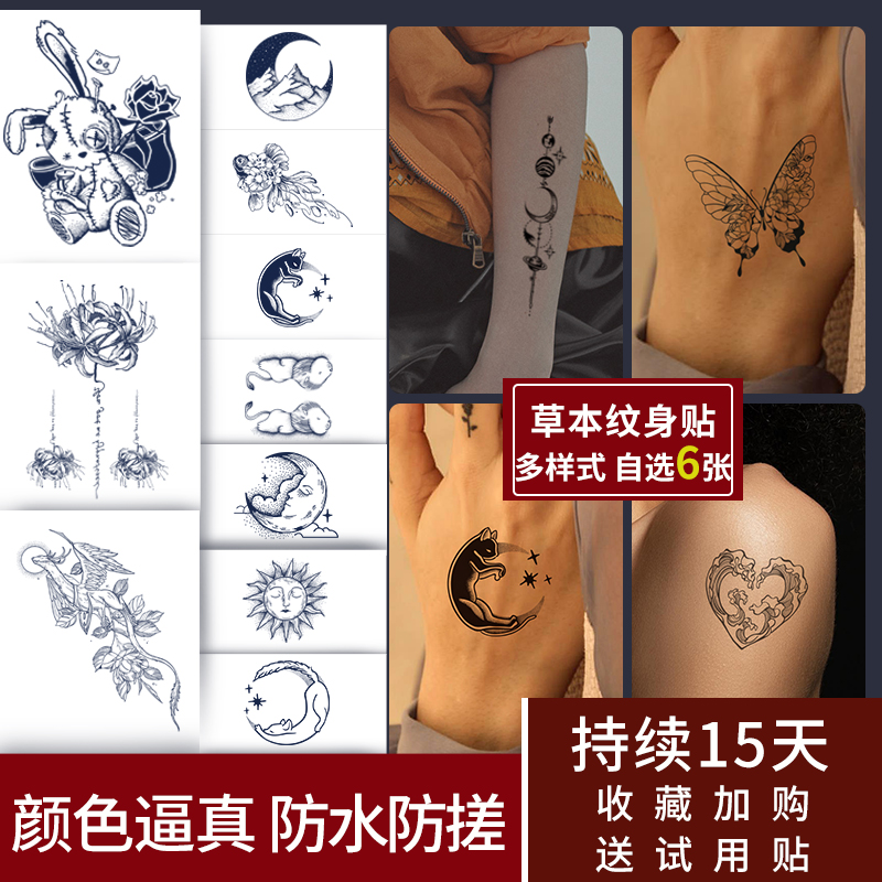 Herbal tattoo stickers for men and women realistic long-lasting flower arms can not wash off non-reflective waterproof simulation juice semi-permanent dark