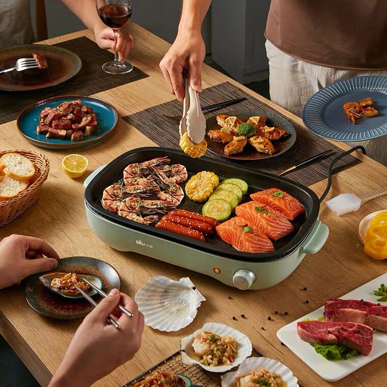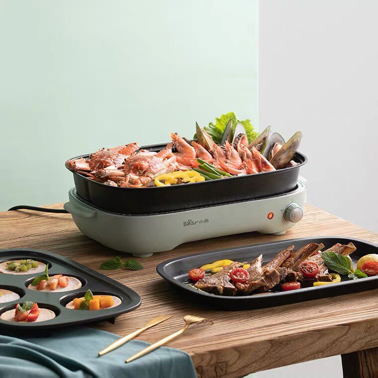 Only send Xinjiang spot bears home multi-function electric oven cooking pot hot pot barbecue All