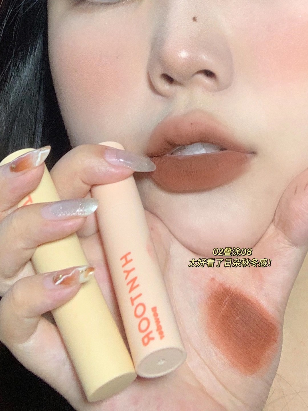 Gingerbread brown mud pastel color direct all in black rabbit HYNTOR velvet mist surface lip mud 02 08 07 07 09