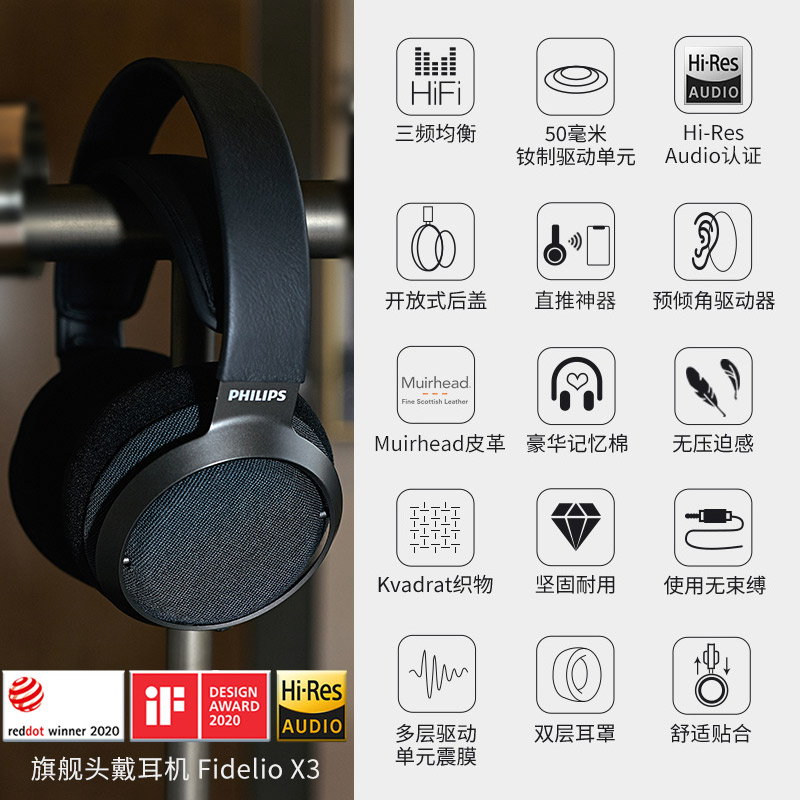 Philips X3Fidelio flagship wired HIFI music headphones dedicated to enthusiasts