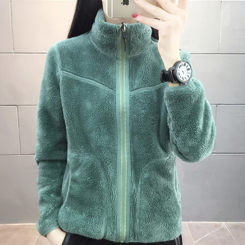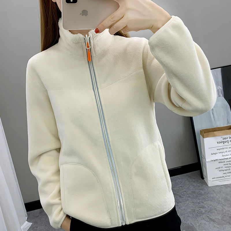 Ski coral fleece jacket women's windproof AB surface fleece bottoming shirt outdoor two-sided wear polar fleece liner sweater