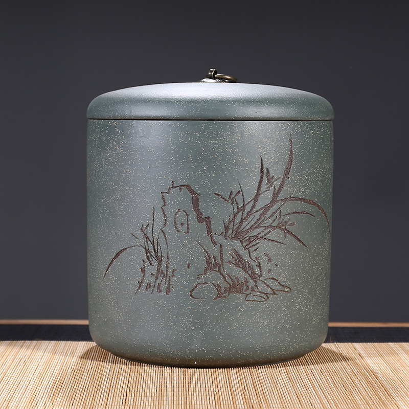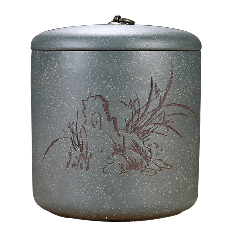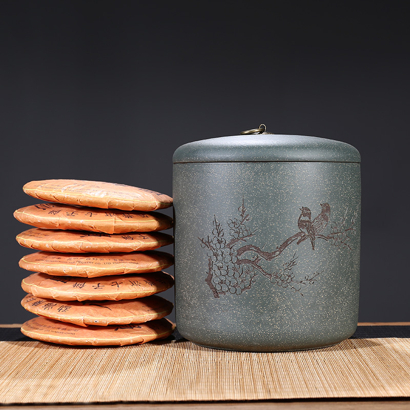 Yixing purple sand tea pot plum orchid bamboo chrysanthemum seven son cake Pu'er storage tea pot purple sand ceramic household sealed pot rice cylinder