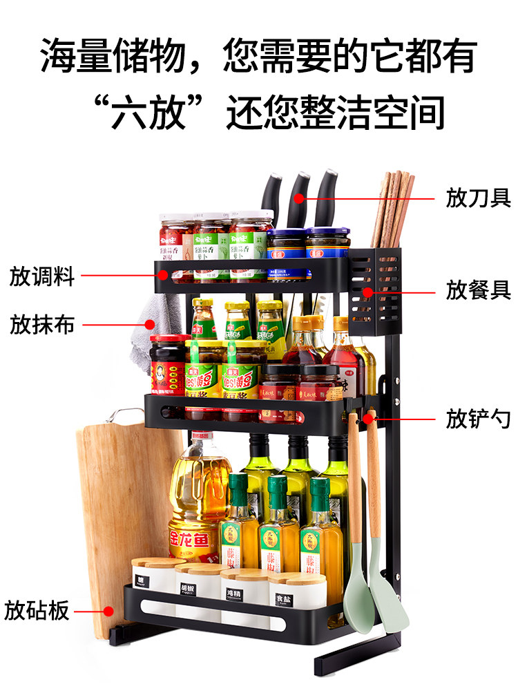 Jiuyang kitchen seasoning shelf multi-functional multi-layer knife holder stainless steel countertop storage condiment shelf