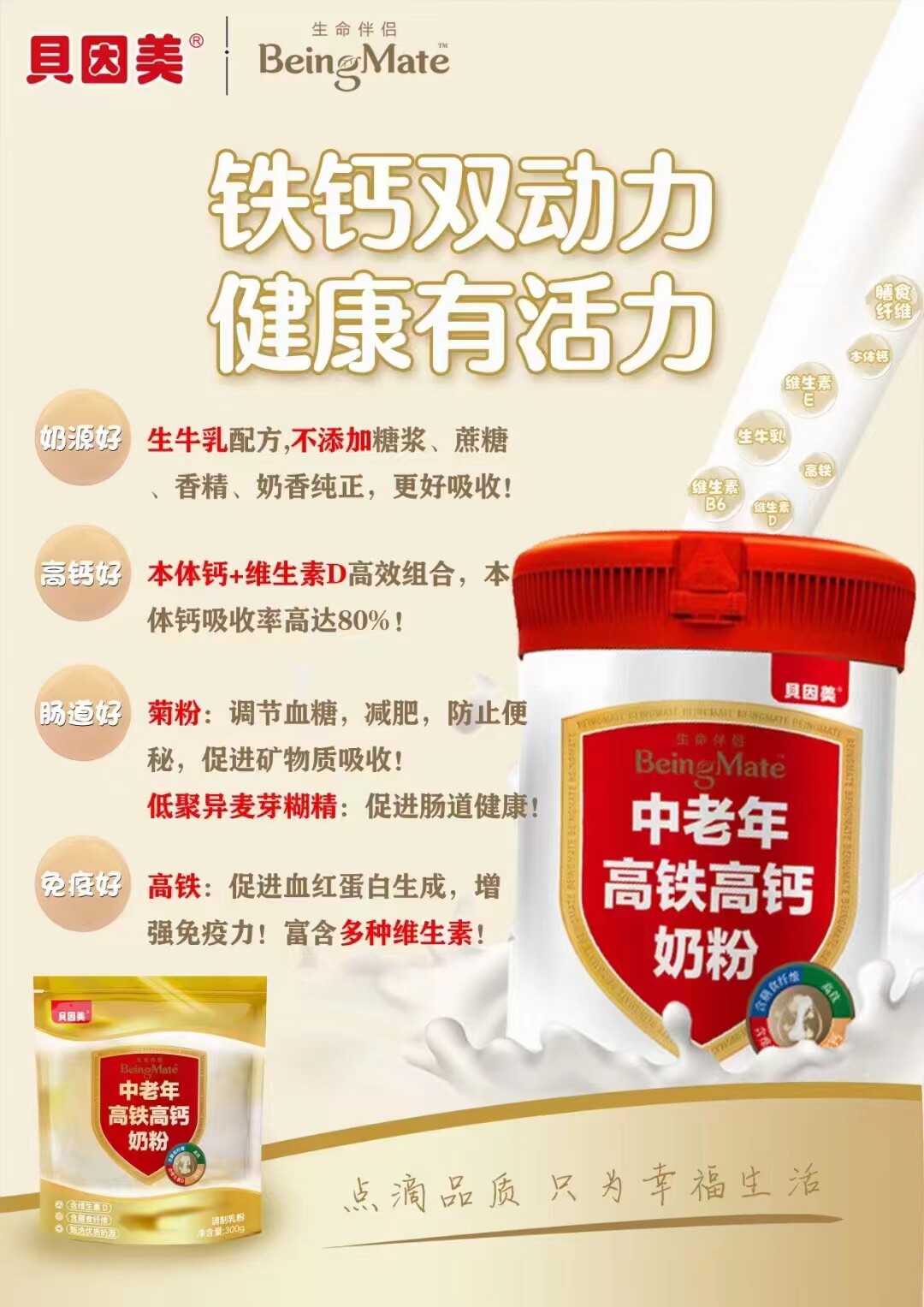 November 2022 Beingmate high-speed rail high-calcium multi-dimensional nutrition adult middle-aged and elderly milk powder formula canned
