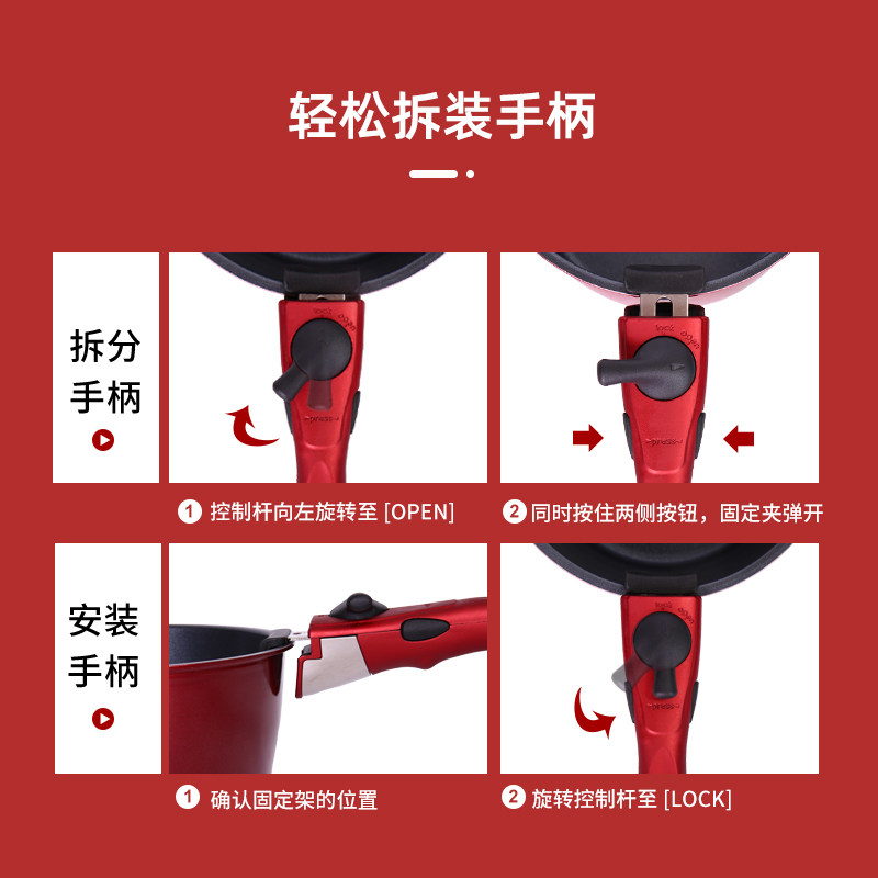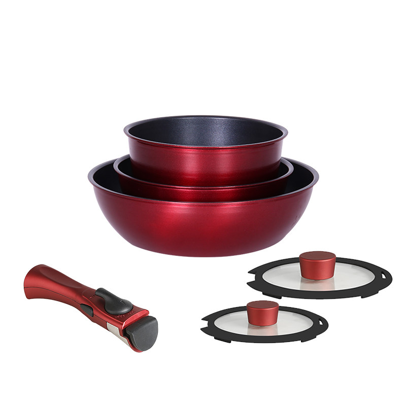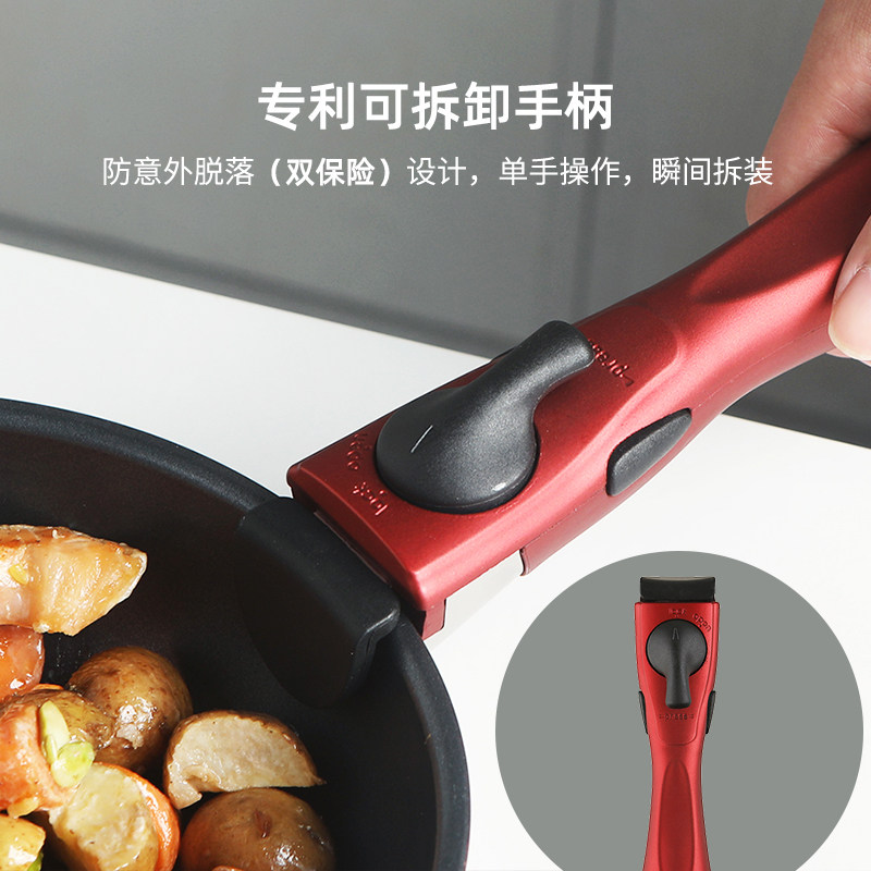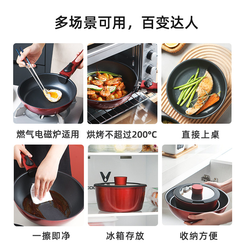 Detachable handle pan with 6 pieces red detachable handle pan with 6 pieces pink detachable handle wood grain color