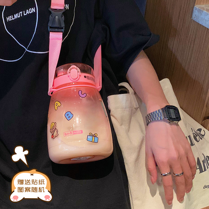 Double drinking cup 1300ml large capacity sports water cup Female student with strap straight drinking straw dual-use cup net red cup