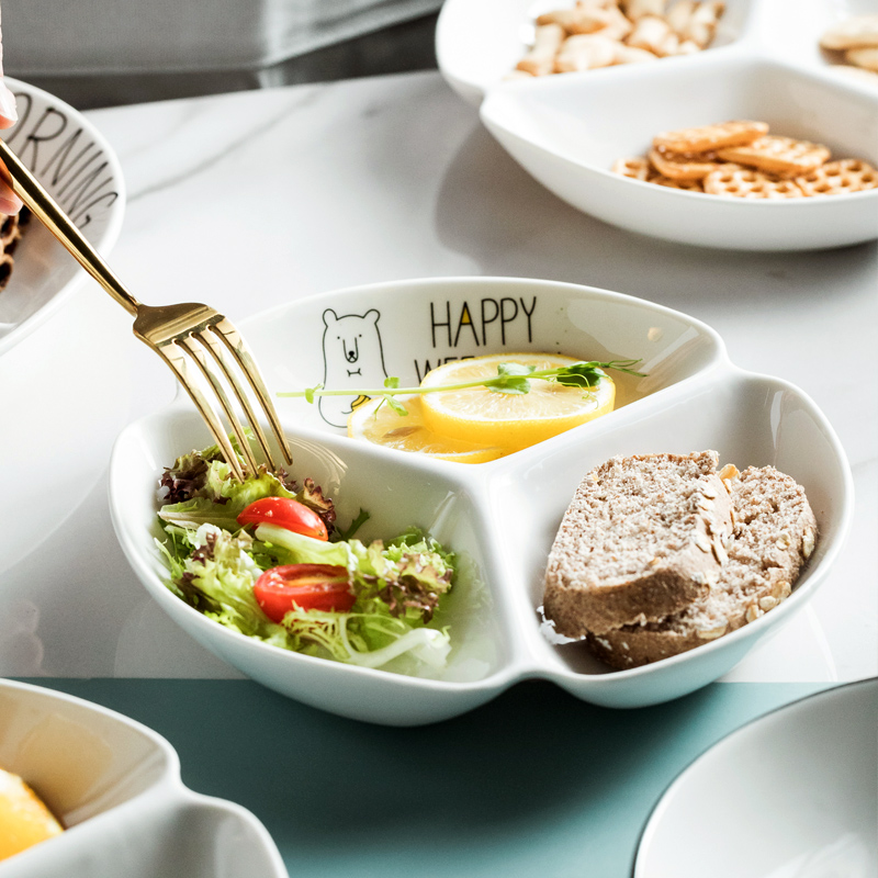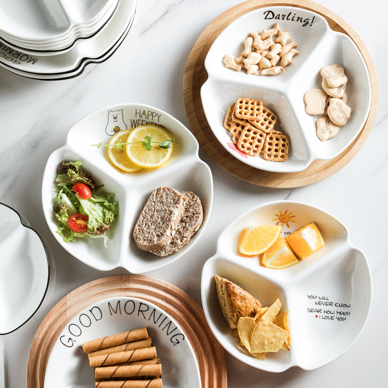 Different Lipogenic Dish Division Plate Dog Household Two-grade Ceramic Tableware Fruit Breakfast Dish 3-grade Dish