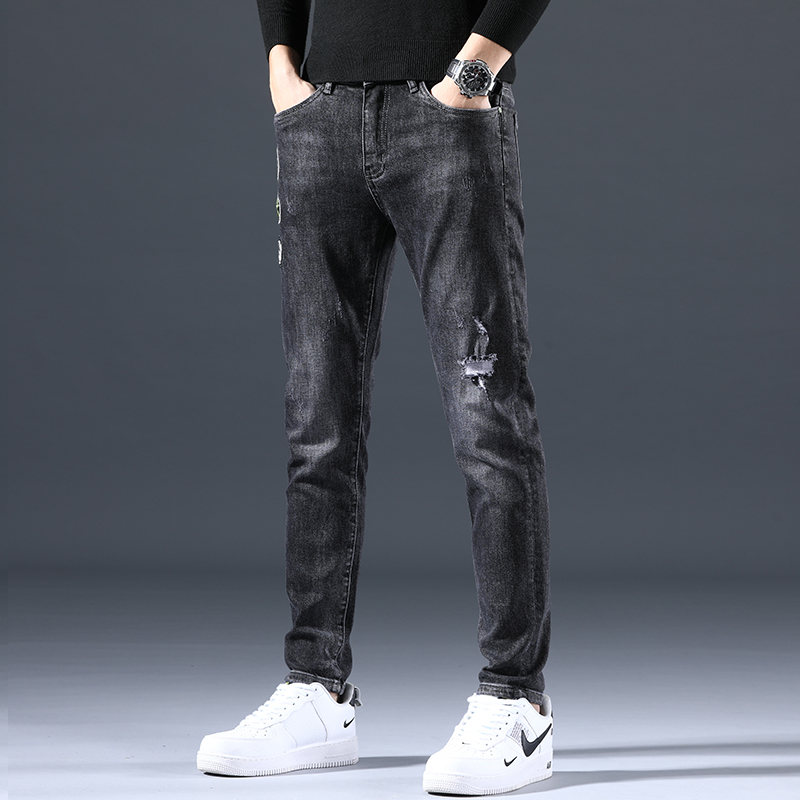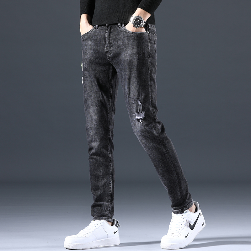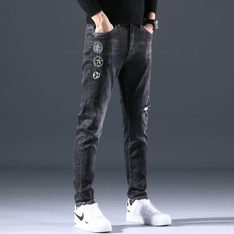 Hong Kong high-end jeans tide in autumn mens small foot straight tube men casual trend hundred and long pants men's clothing