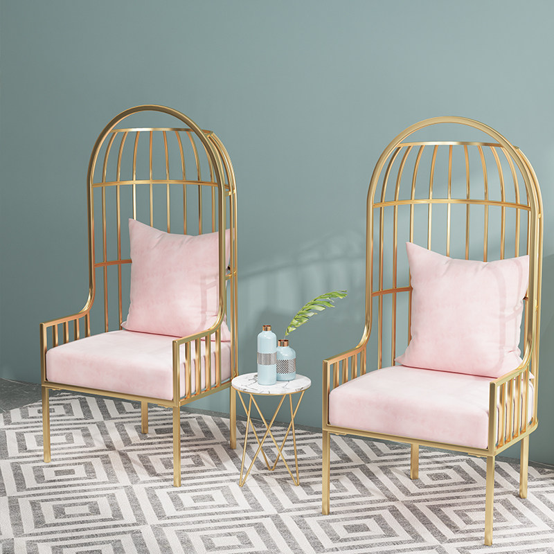 Nordic lobby high-back leisure sofa chair ins net red single iron bird cage sofa chair luxury living room tea table