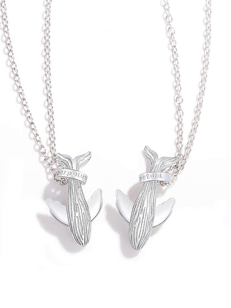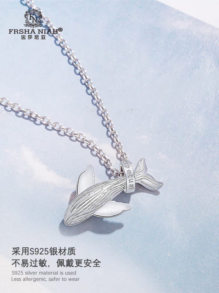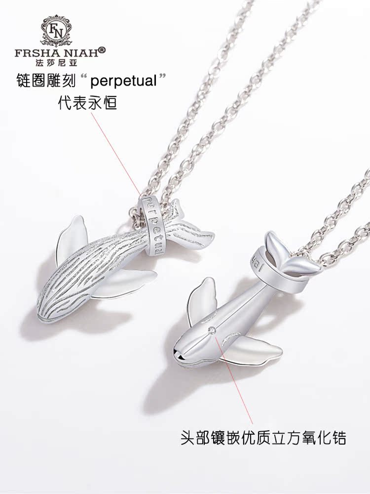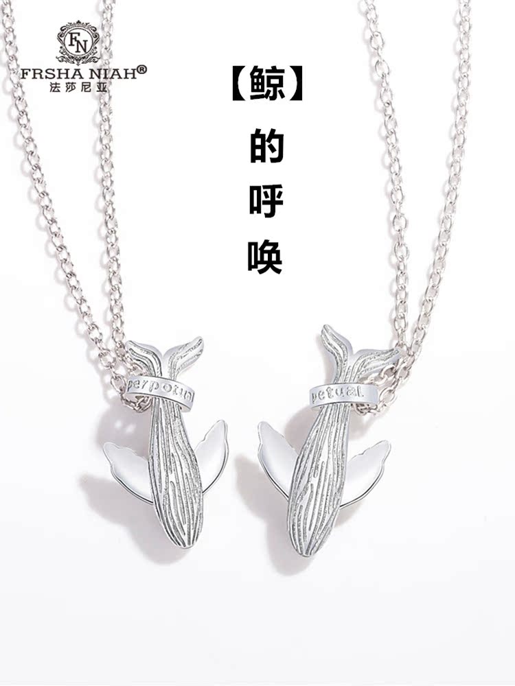 Fazania 52 Hz Whale Lovers Necklace A Pair Of Pure Silver Long-distance Love Female Fish Tail Collarbone Chain Memorial Gift