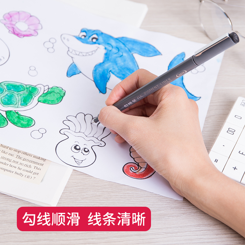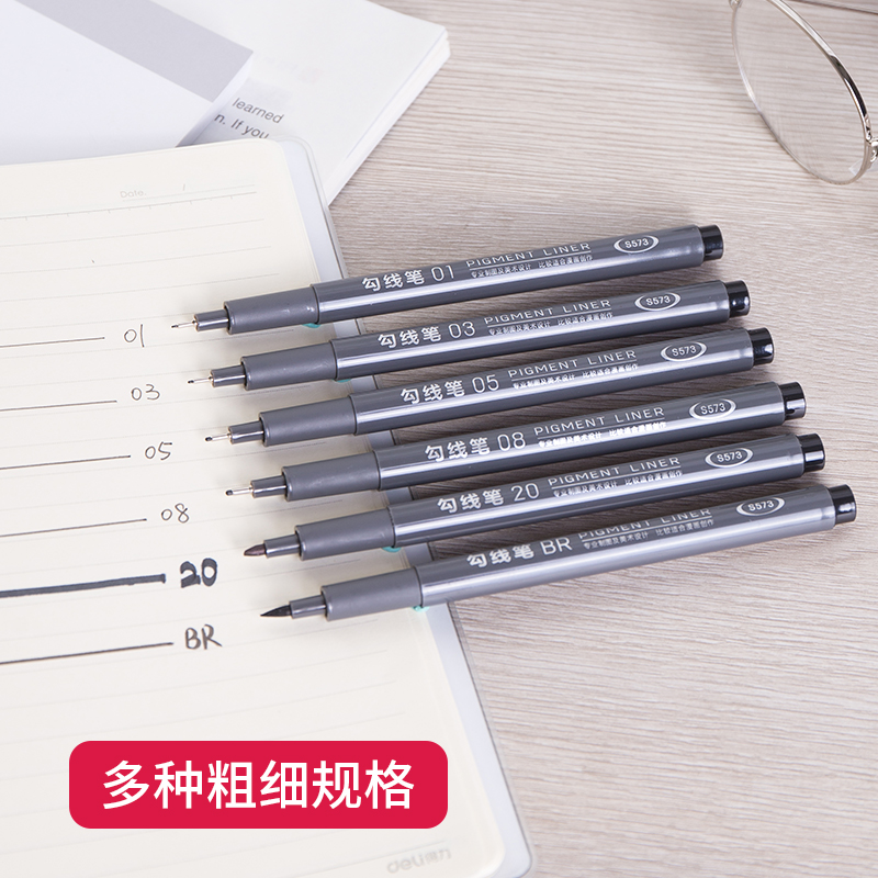 Deli double-headed art hook line pen Black thin head thick head Kindergarten students use children's painting stroke marker to draw hand-painted special color oily thick head drawing hook line mark professional