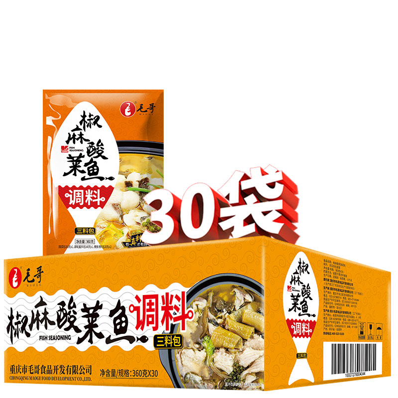 Chongqing gourmet Mao Gothic pepper Sesame Sour Vegetable Fish Seasoning 360g * 30 Bag Hotpot Soup Base Seasoned Kitchen Seasoning the whole