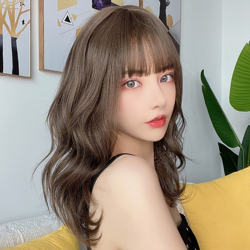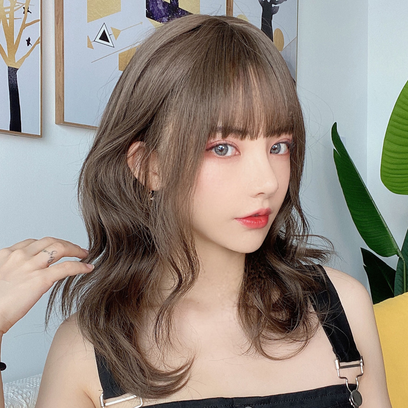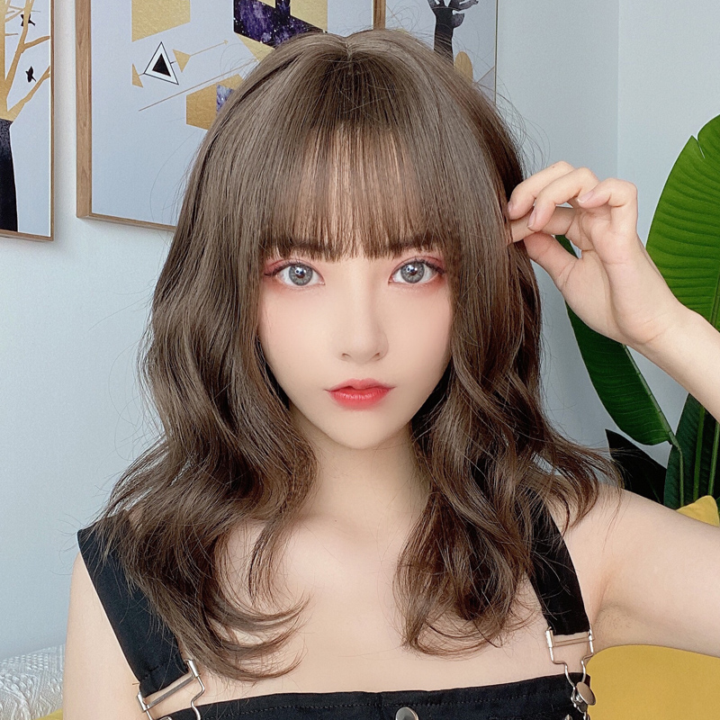 Princess Li wig female short curly hair natural girl medium and long hair wool curly headgear Qi bangs short clavicle hair