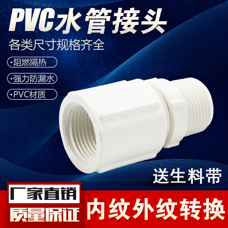 National standard thread pvc internal and external thread direct water pipe fittings plastic quick-connect white plastic double-threaded pipe fittings metric