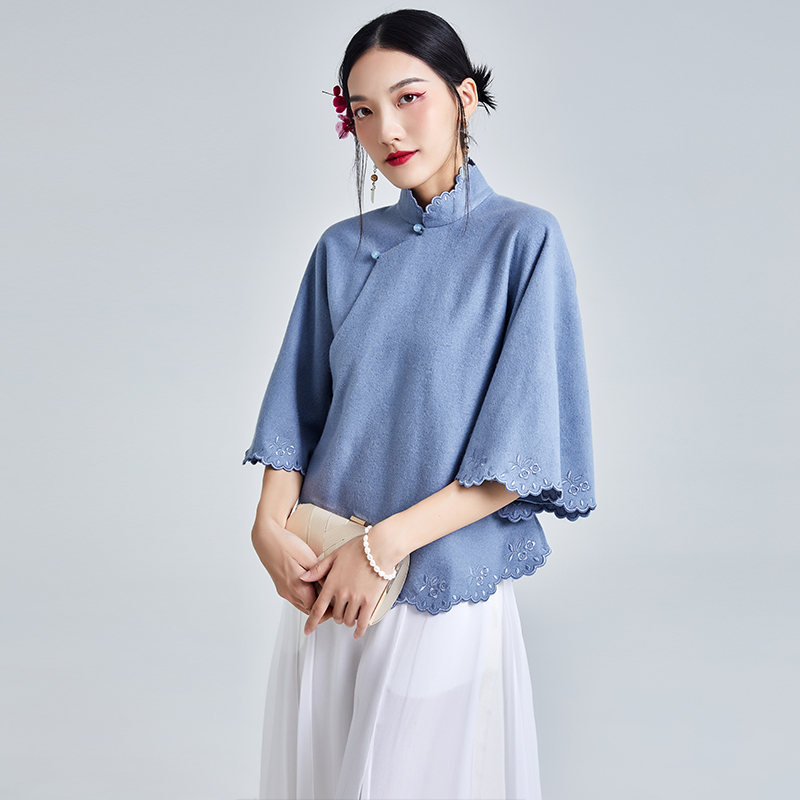 2020 autumn and winter new Chinese style retro literary Zen tea dress wool embroidery improved Tang dress tea art clothing female