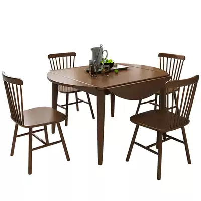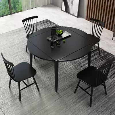 Square table becomes round table Full solid wood folding dining table Round small apartment household square multi-function telescopic dining table