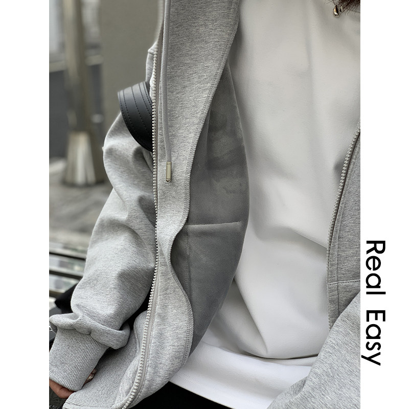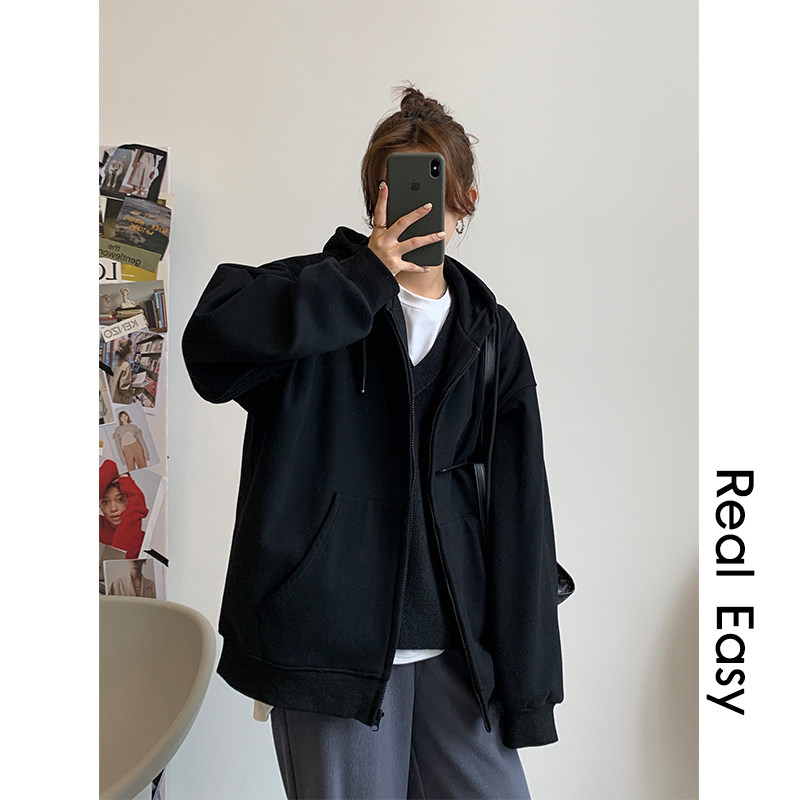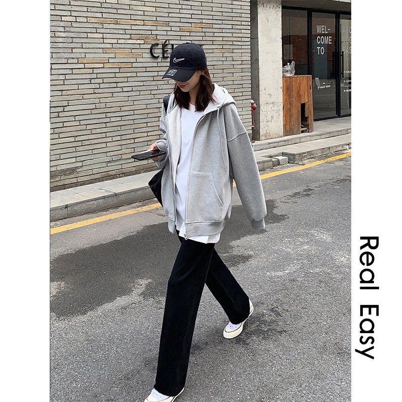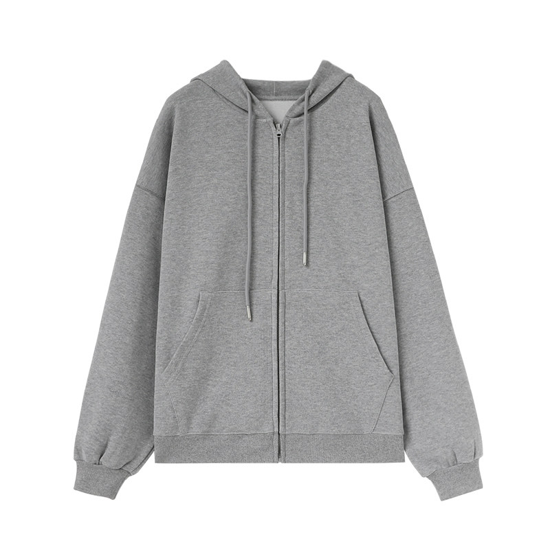 A one zipper sweatshirt women's spring and autumn new lazy style casual Korean version of loose hooded cardigan gray coat
