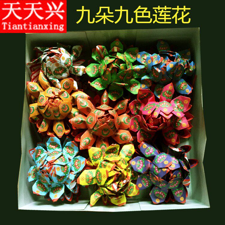 Tiantianxing color nine-turn lotus boxed gold nine-flower lotus nine-color deceased lotus over-prayer burning paper
