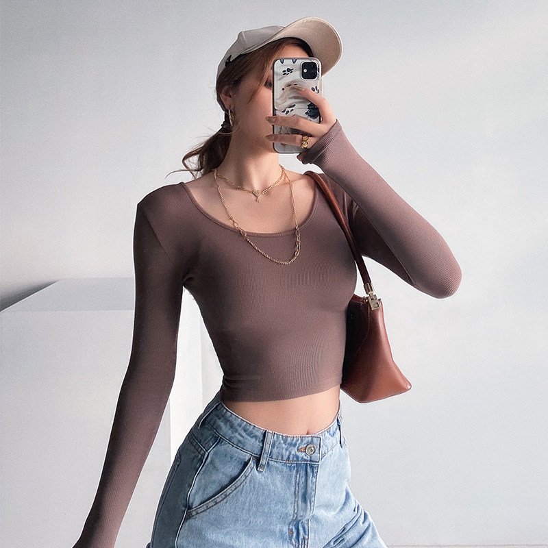 European and American ins sexy skinny short and thin open-heart machine Nets with a female long sleeve T-shirt small sub-jersey