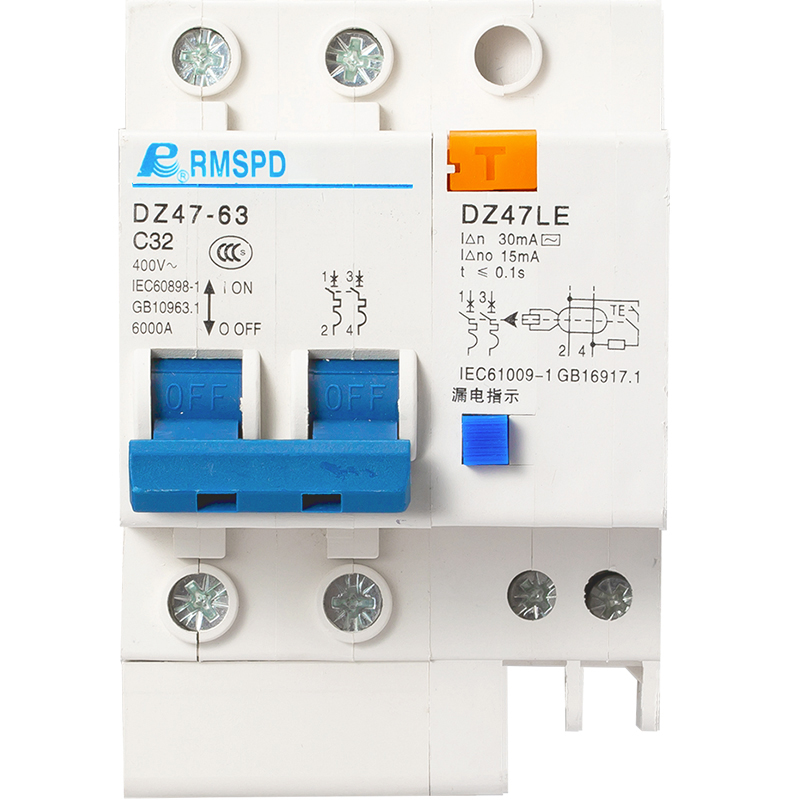 Shanghai people DZ47LE-63 leakage circuit breaker small rail type 220V household 2P leakage switch open