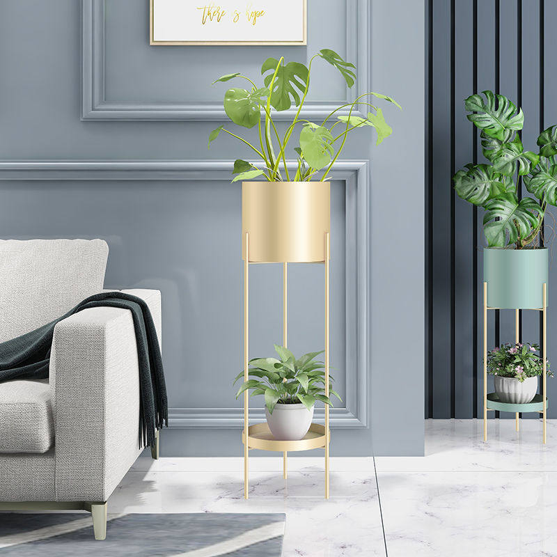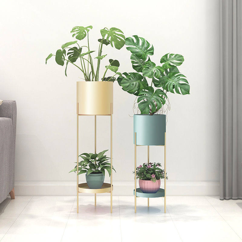 Nordic iron flower stand indoor living room light luxury simple floor-standing decorative flower stand household balcony flower pot shelf